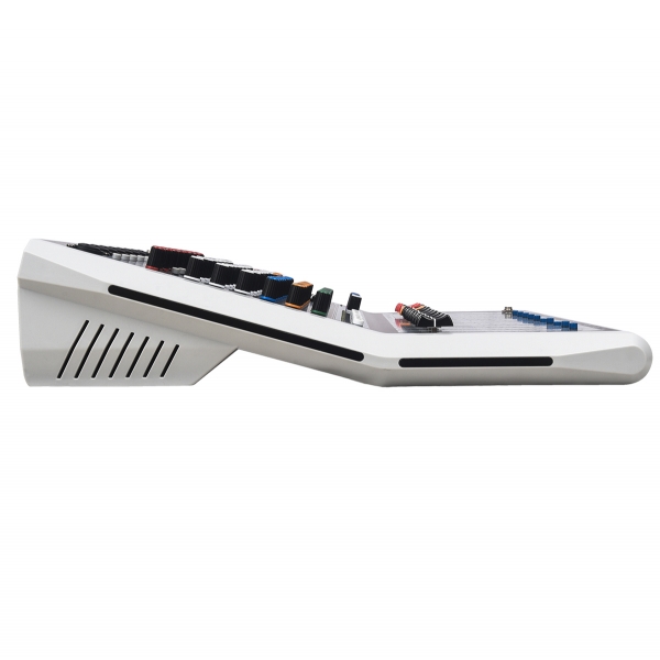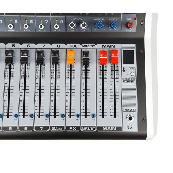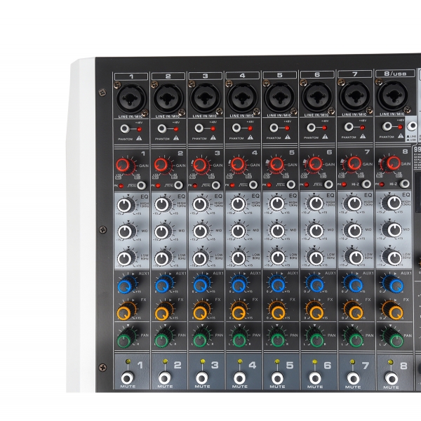 A série de mesas AG é uma das mais vendidas da AMW devido ao seu formato grande com faders de 100 milímetros e excelente custo benefício. Agora na nova geração ( AG8 v2 ) nós melhoramos diversas partes da mesa (EFX, Player), adicionamos diversas novas funções (USB, Solo, Hi-Z, Corte de graves) e mantivemos o painel curvado e os faders de 100 milímetros que são o grande diferencial dela nessa faixa de preço. O resultado é um produto robusto, recheado de funções e com um visual incrível. A mesa conta com 8 canais com entradas combo (XLR, P10) e chaves individuais de phantom power, equalizador de 3 bandas com corte de graves (Low-Cut), Chaves de Hi-z (Direct Box) nos dois últimos canais, novo processador de efeitos agora com 99 efeitos DSP, nova conexão USB (interface) na parte de trás da mesa e fonte interna bivolt de alto padrão. Um produto para quem busca o máximo do custo benefício em uma mesa de formato grande.
