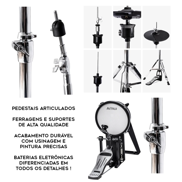 Informações do produto: AMW ED11 Pro Bateria Eletrônica All Mesh Dual Real Hi Hat Condução Tri zone Pratos Dual