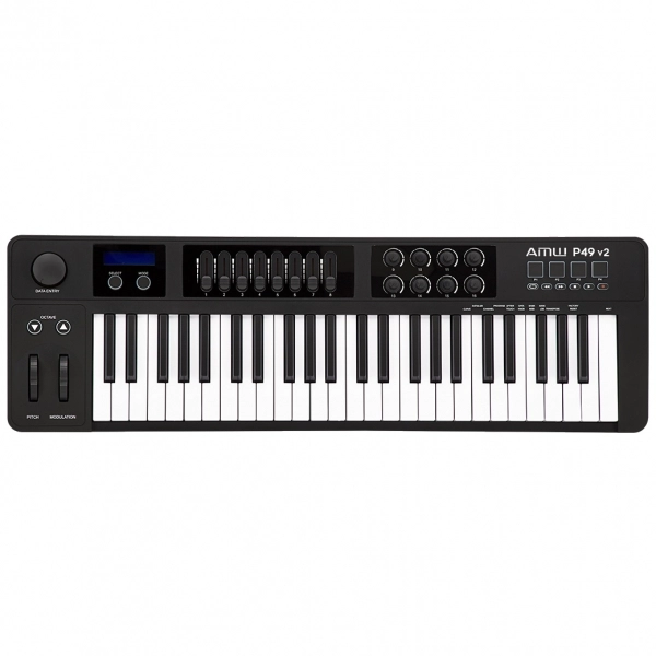 AMW P49 v2 Teclado Controlador MIDI USB 49 Teclas 8 Faders 8 Knobs