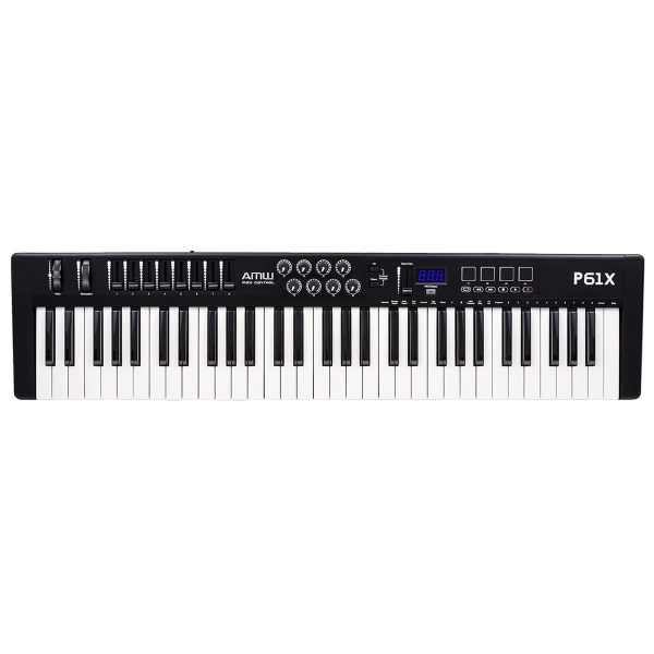 Descrição:O Teclado controlador MIDI USB AMW P61X Black com 61 teclas sensíveis ao toque é fabricado em Taiwan com altíssima qualidade construtiva. São mais de 30 anos de experiência em projetos que tornam possível para o P61X uma robustez incrível utilizando mecanismos nas teclas que possuem alta durabilidade e baixa manutenção, superando nesse quesito produtos que custam 2 a 3 vezes mais caro. O P61X possui uma série de funções avançadas como transpose, ajuste de curva de sensibilidade nas teclas (8 curvas disponíveis), ajuste de canal midi, etc. Conta ainda com 8 Faders e 8 knobs endereçáveis, comandos para DAW (Play, Pause, Stop, etc), 4 PADs e conexões através de porta USB e também Midi IN / OUT através de portas MIDI de 5 pinos além da entrada para pedal de sustain. É uma linha para quem busca durabilidade e um valor mais enxuto se comparado a outros modelos. O P61x não fica devendo em nada e é atualmente um dos controladores Midi de 61 teclas mais vendidos no Brasil.Especificações:61 teclas com sensibilidade ao toque e ação de sintetizador04 PADs sensíveis ao toque08 Faders 08 KnobsBotões para controle de DAWPitch Bend e Modulation WheelBotões para controle de oitavas, select e modeEntrada para pedal de sustainSaída Midi através de porta MidiFader para configuraçãoVisor LED com 3 dígitos08 Curvas de velocity selecionáveisFunções de Transpose e outras funções avançadas Conexão Midi através de porta USB Energia através de porta USBCompatível com Windows XP/Vista/7/8 e MAC OSXCabo USB InclusoTamanho 92 x 22 x 8 cmPeso do teclado: 4 KgItens Inclusos:TecladoCabo USBManual