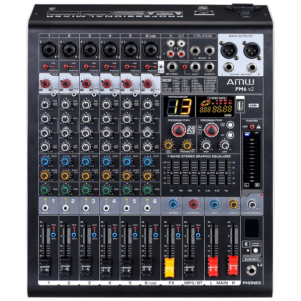 Amw Pm6 v2 Fx Mesa De Som 6 Canais 99 Efx DSP Interface USB Eq