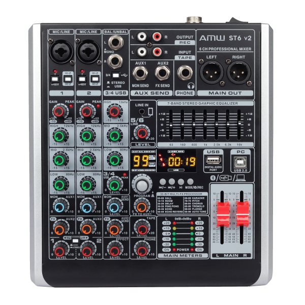 AMW ST6 Mesa de Som 6 Canais 99 Efx Interface de Áudio USB !